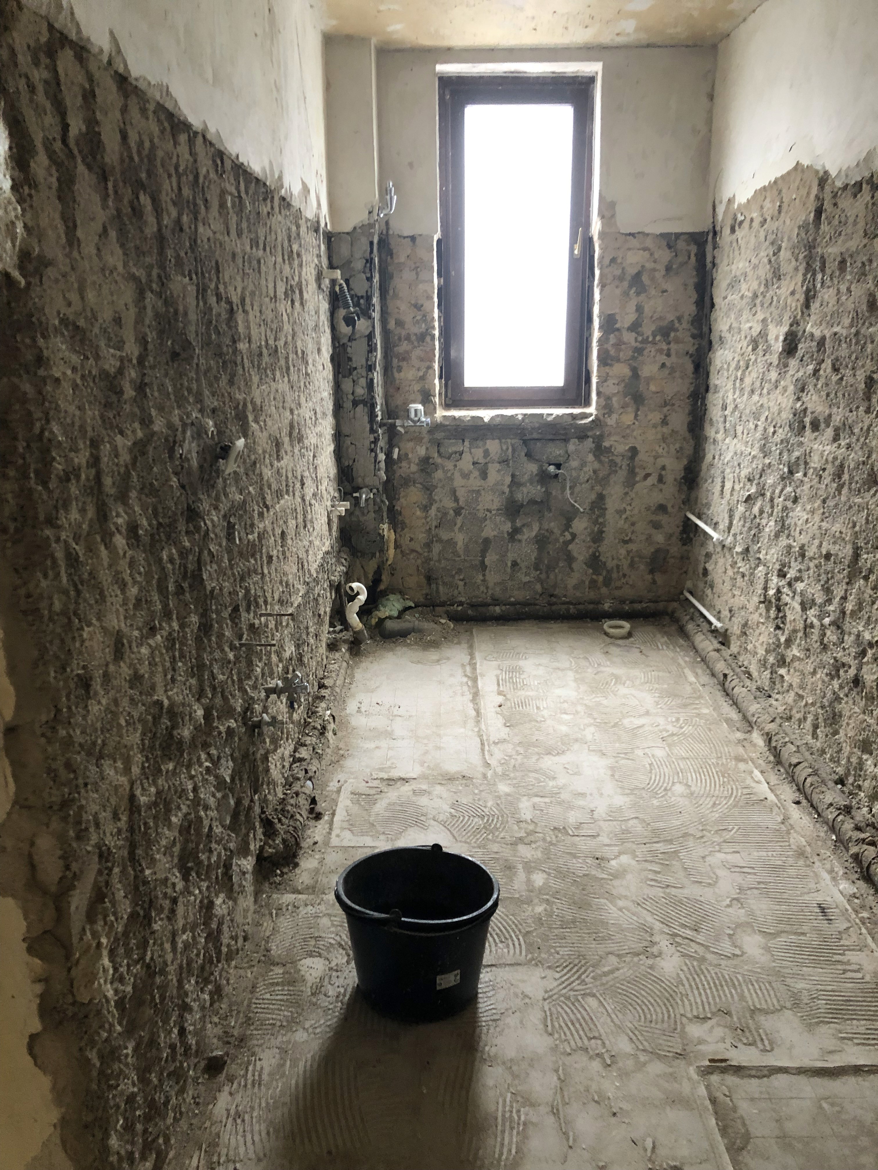 Im Duschbereich kam eine pflegeleichte Acryl-Duschtasse im Format 100 × 100 cm mit leichtem Gefälle zum Einsatz. Eine moderne Regendusche erhöht den Nutzungskomfort.