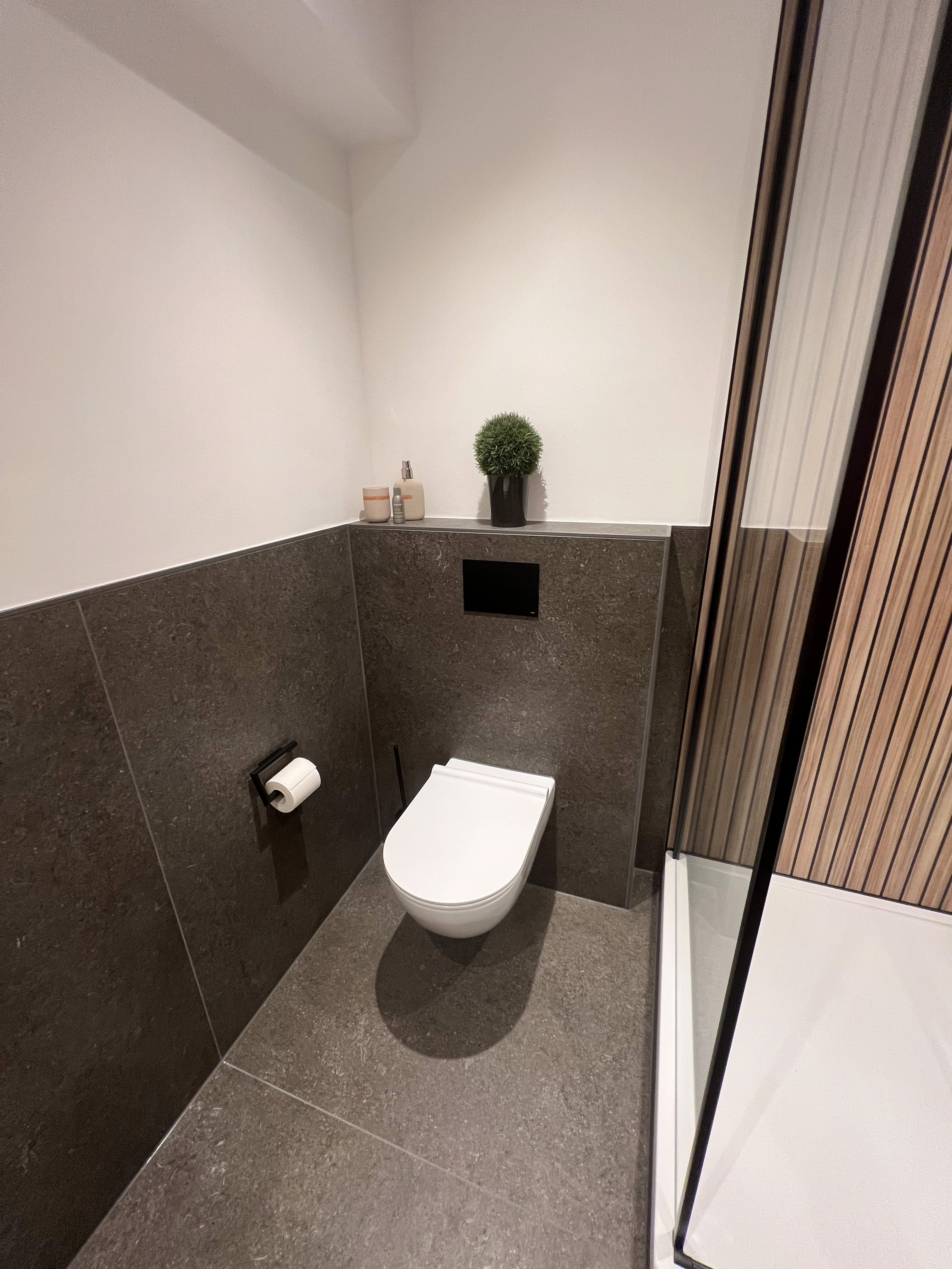 Eine zusätzliche Gästebadlösung im Untergeschoss eines Einfamilienhauses, konzipiert für kompakte Nutzung, klare Abläufe und unkomplizierte Pflege.