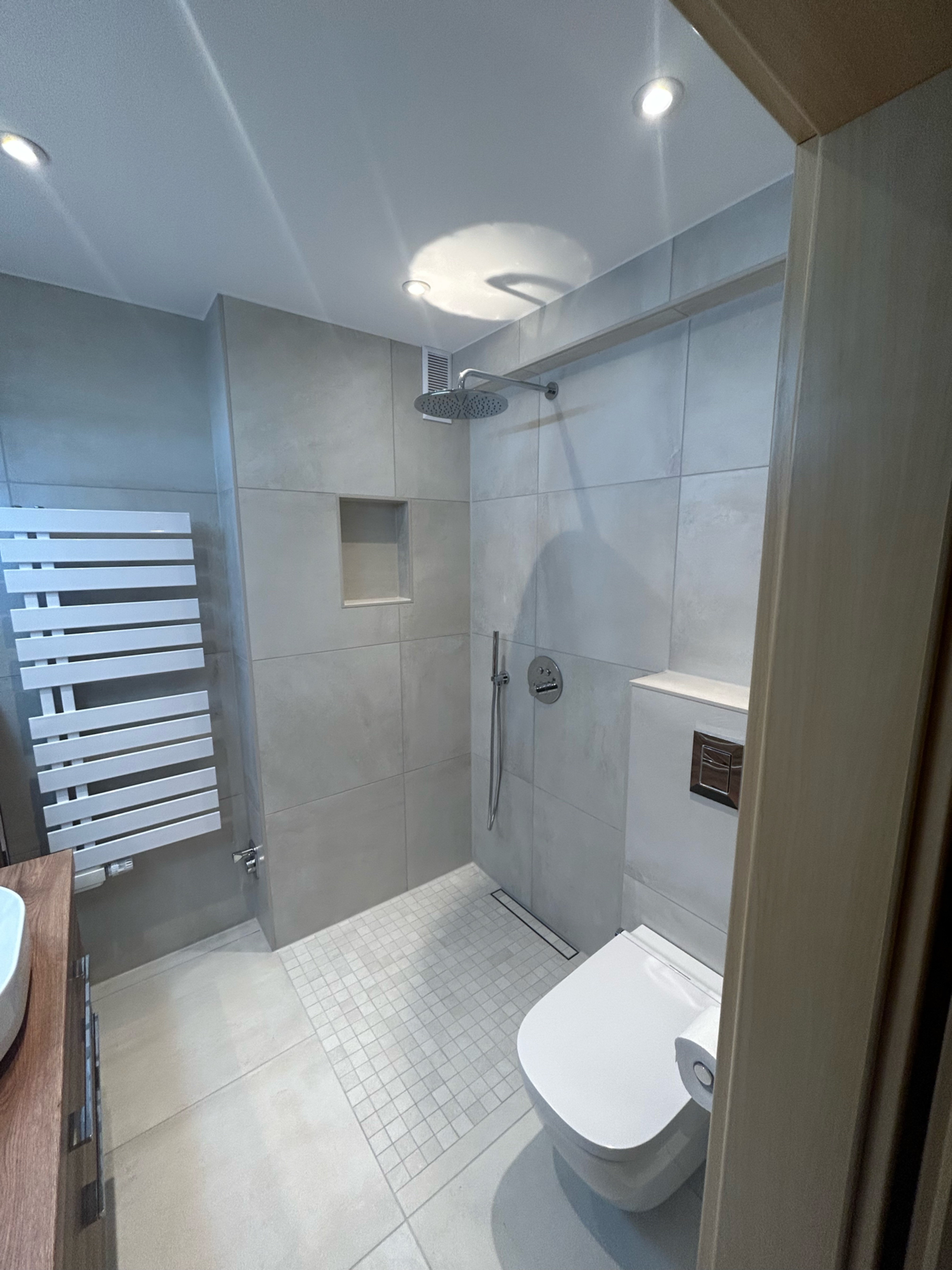 In diesem Projekt bestand die besondere Herausforderung darin, auf sehr begrenzter Fläche möglichst viele Funktionen unterzubringen. Ursprünglich befand sich hier eine kleine Eckbadewanne, die viel Platz beanspruchte, ohne diesen sinnvoll zu nutzen.