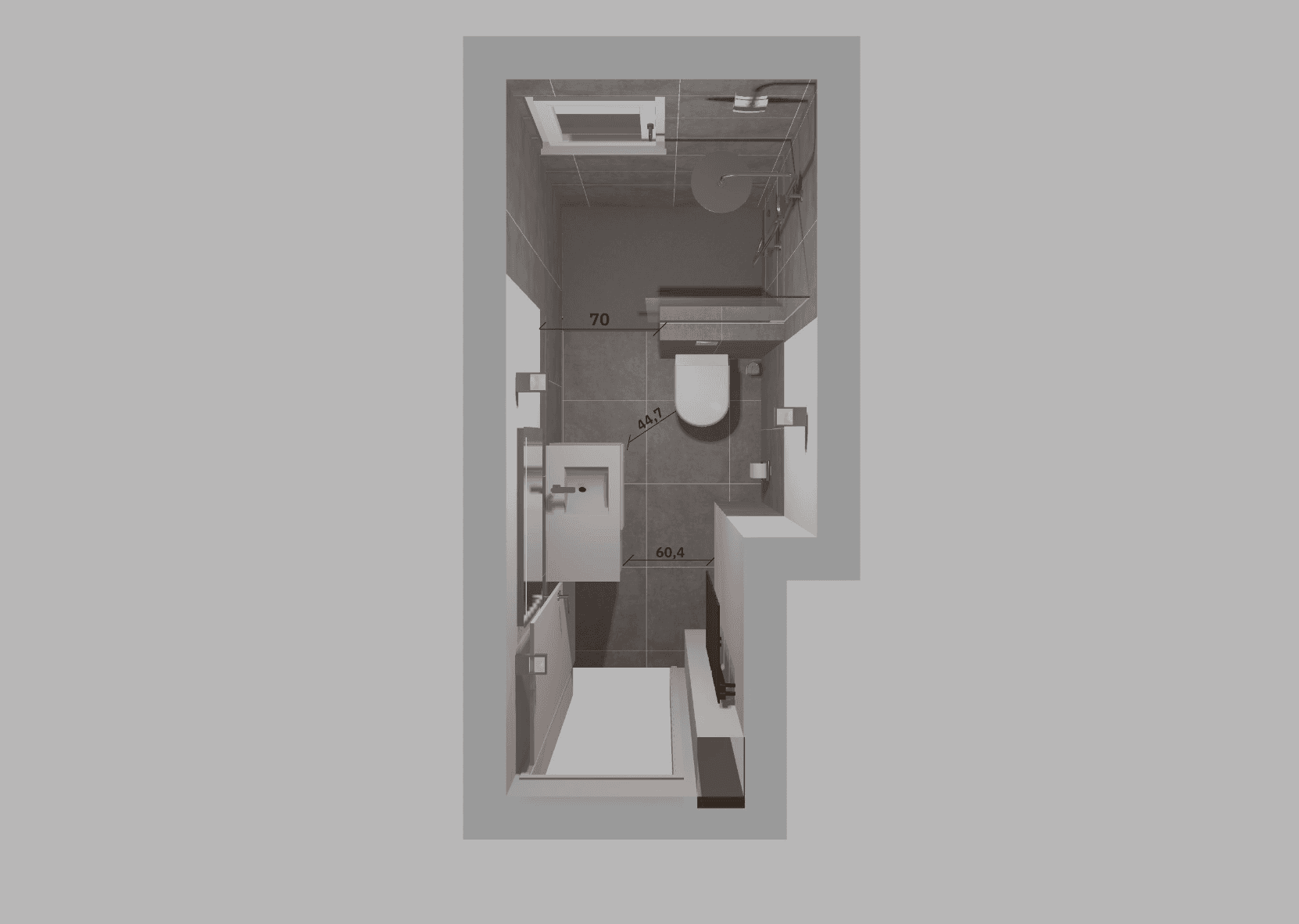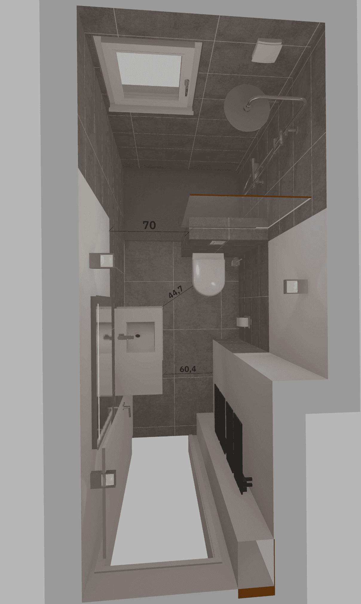 Die Besonderheit dieses Projekts liegt in der extrem schmalen Raumstruktur. Ziel war es, auf minimaler Breite eine funktionale und zugleich komfortable Lösung zu realisieren.