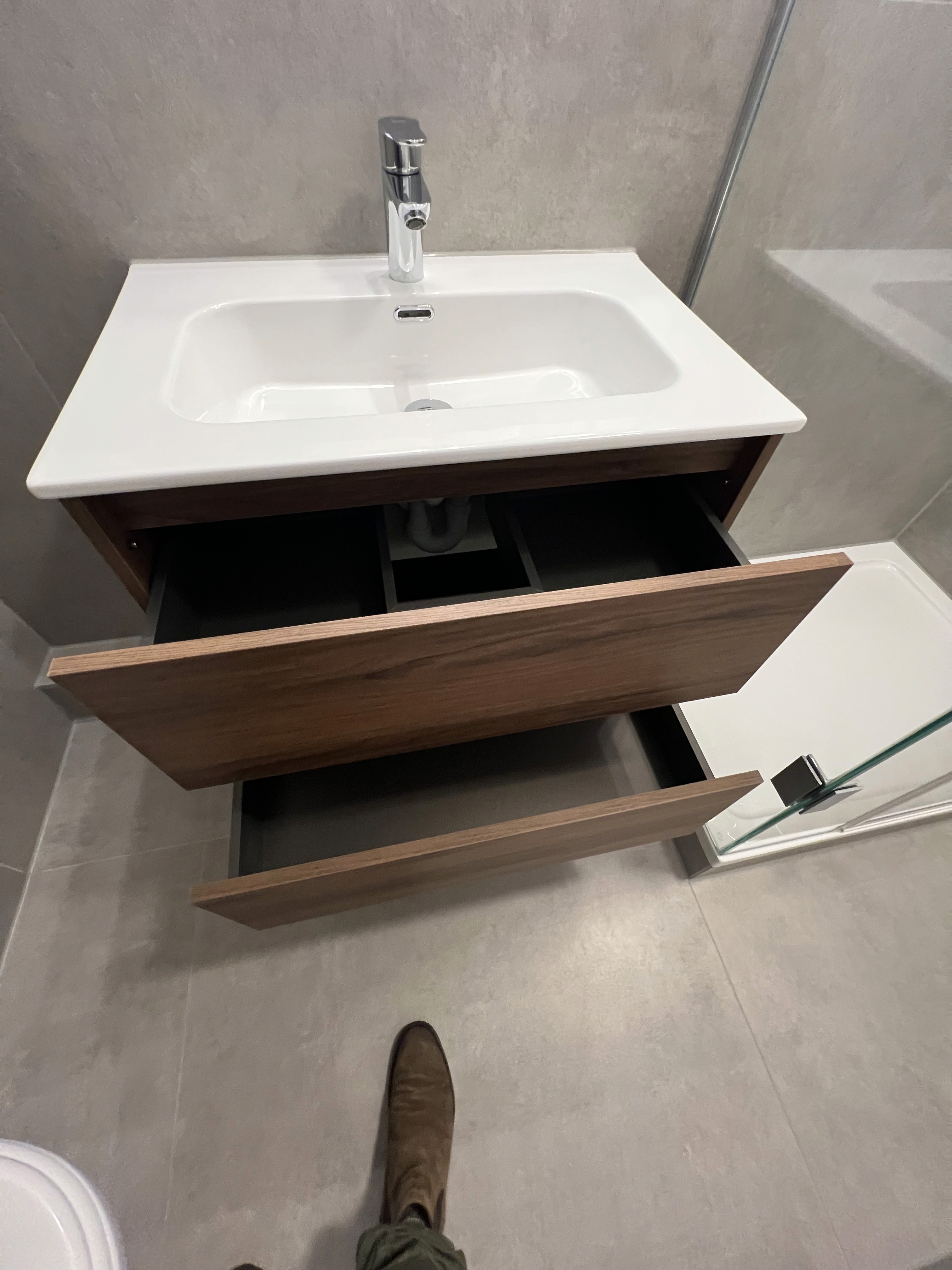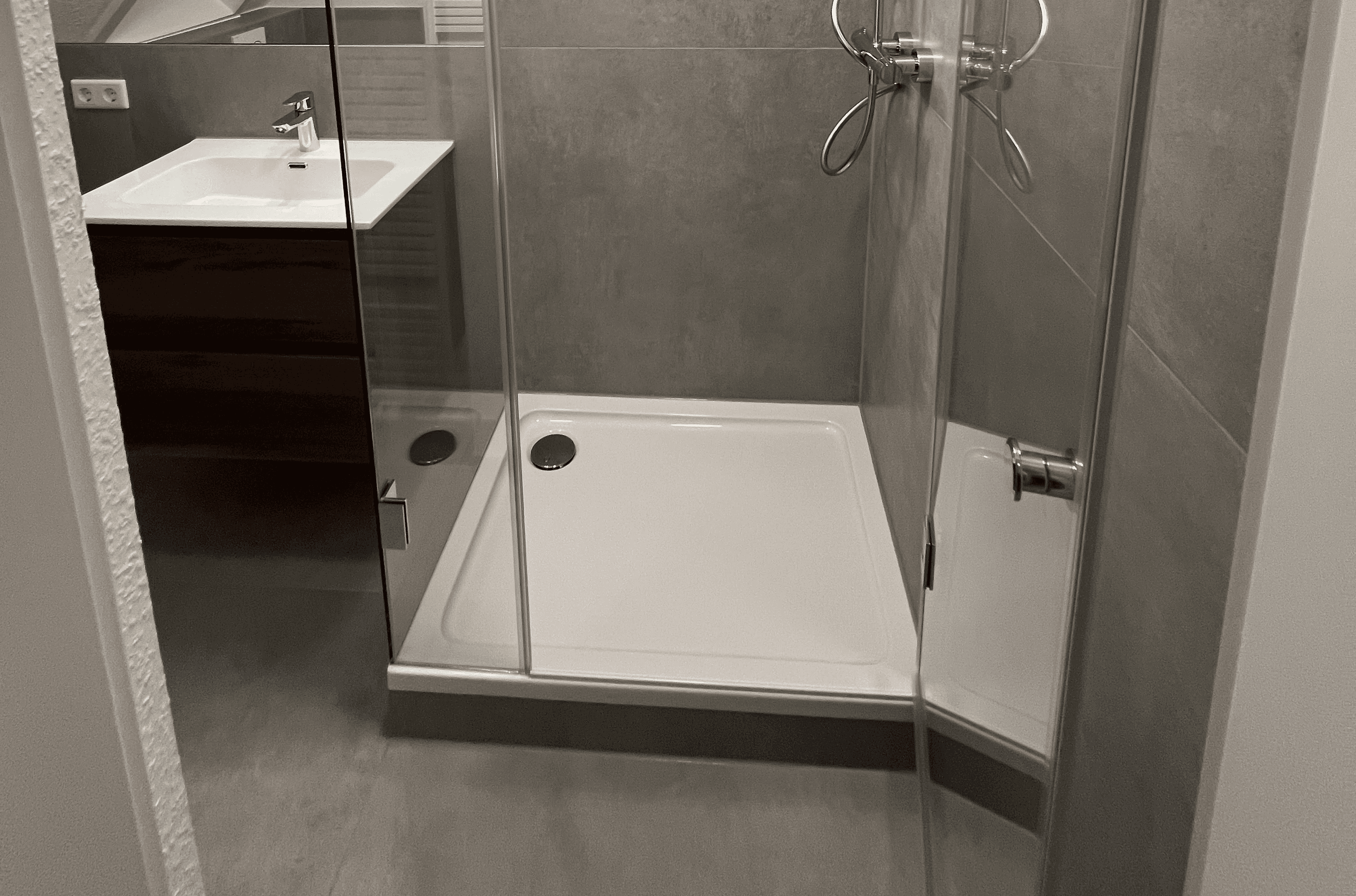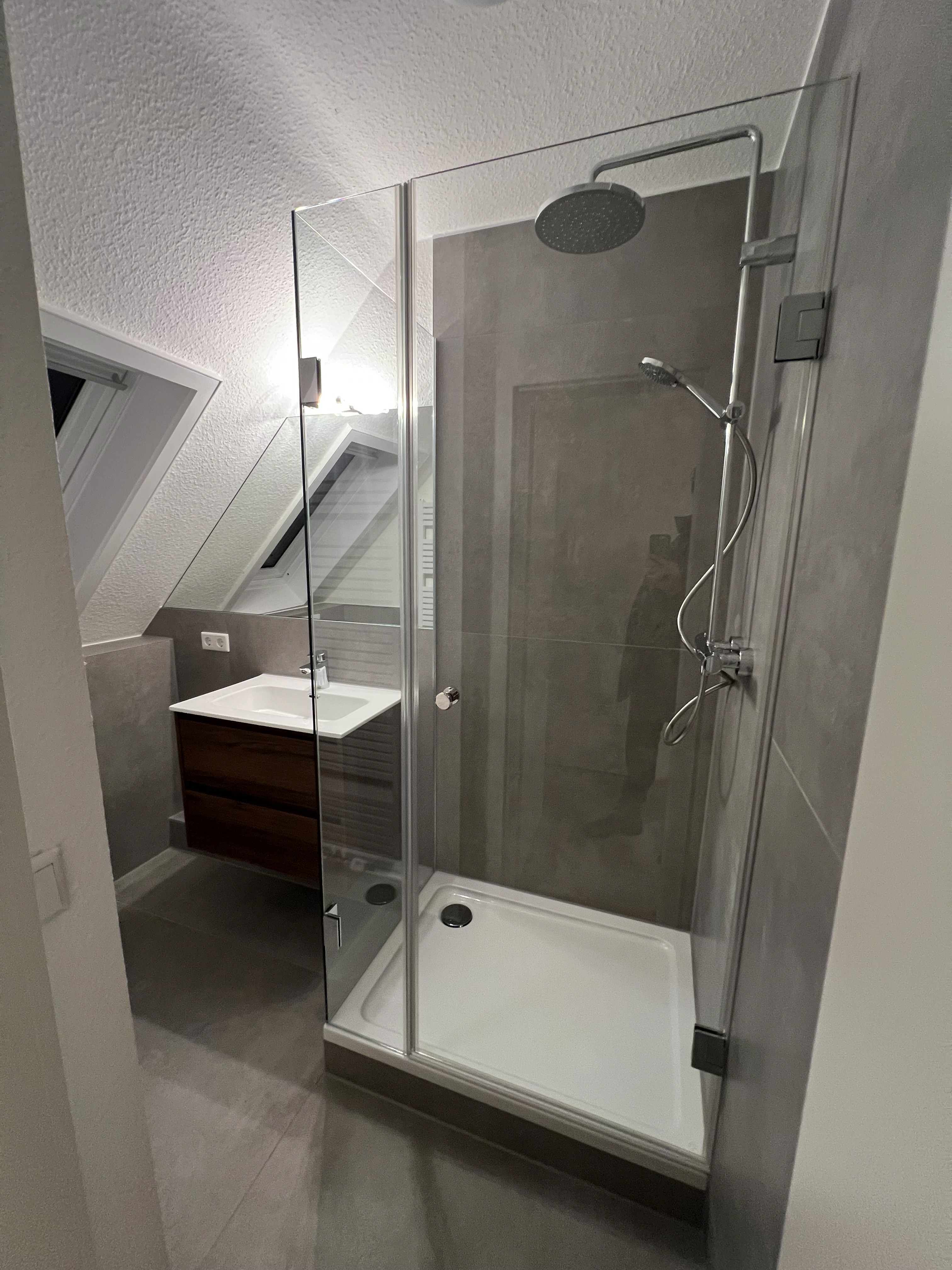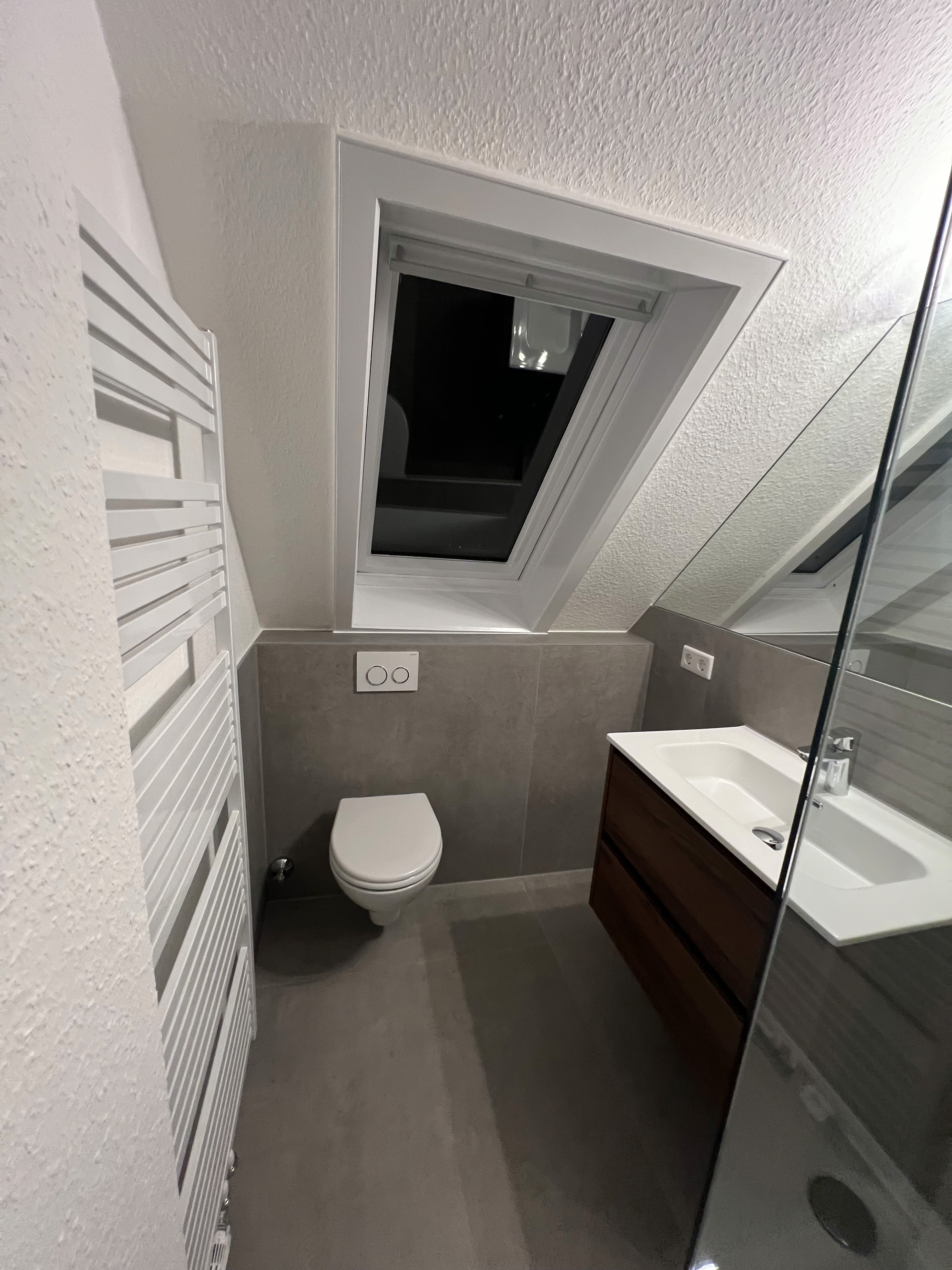 In diesem Dachgeschossbad bestand die Herausforderung darin, auf sehr begrenzter Fläche eine klare und funktionale Struktur zu schaffen. Die vorhandene kleine Badewanne nahm viel Raum ein, ohne einen echten Mehrwert zu bieten, weshalb das Konzept vollständig neu gedacht wurde.