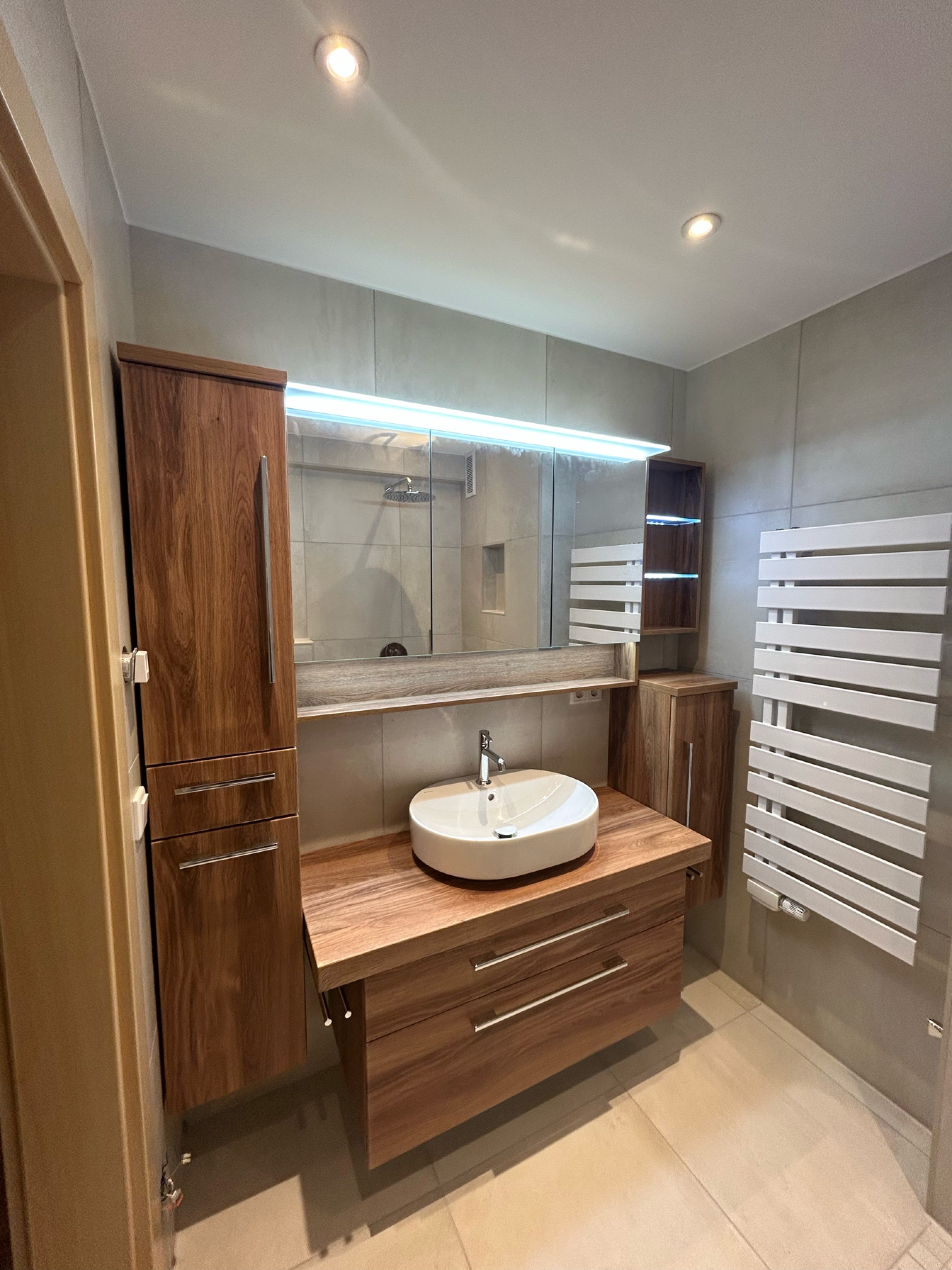 Ein hochwertig gestaltetes Bad mit edlen Materialien, ruhigen Linien und sorgfältiger Planung – ideal für maximalen Komfort im Alltag.